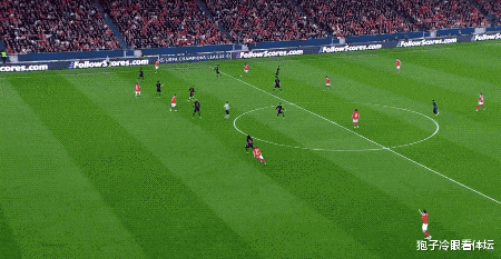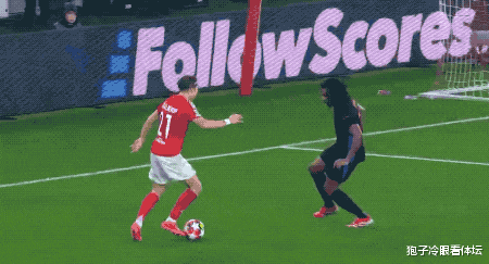 巴尔德突入禁区,本菲卡后卫托马斯没能踢到皮球,反而一脚踩在了巴尔德的脚面上,裁判第一时间判罚角球,好在有VAR的存在,裁判该判点球。